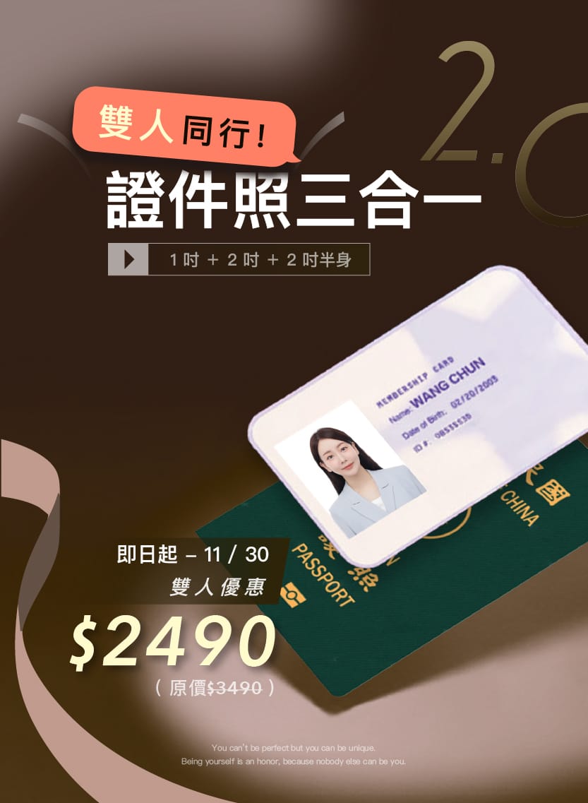 【雙人同行】證件照三合一 2.0(含妝髮)