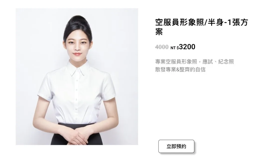 拍攝符合空服員規範的證件照,可以加強履歷的整體性!一眼讓面試官知道您的空服員形象。