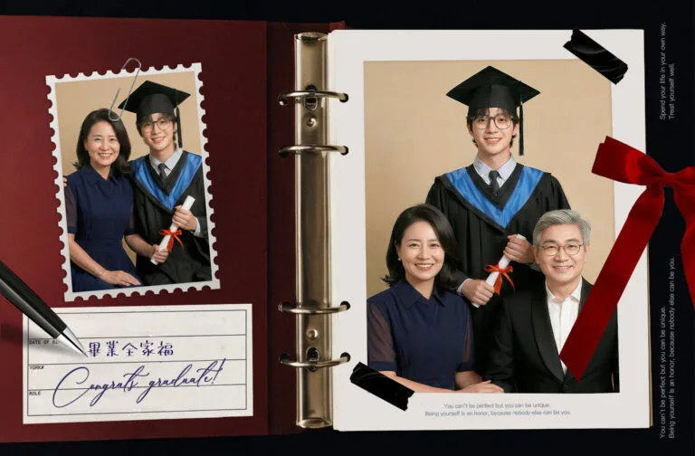畢業,不只是個人的里程碑,更是一段屬於「全家」的重要時刻。穿上學士服,和一路支持你的家人一起入鏡,留下最有溫度的畢業紀念。