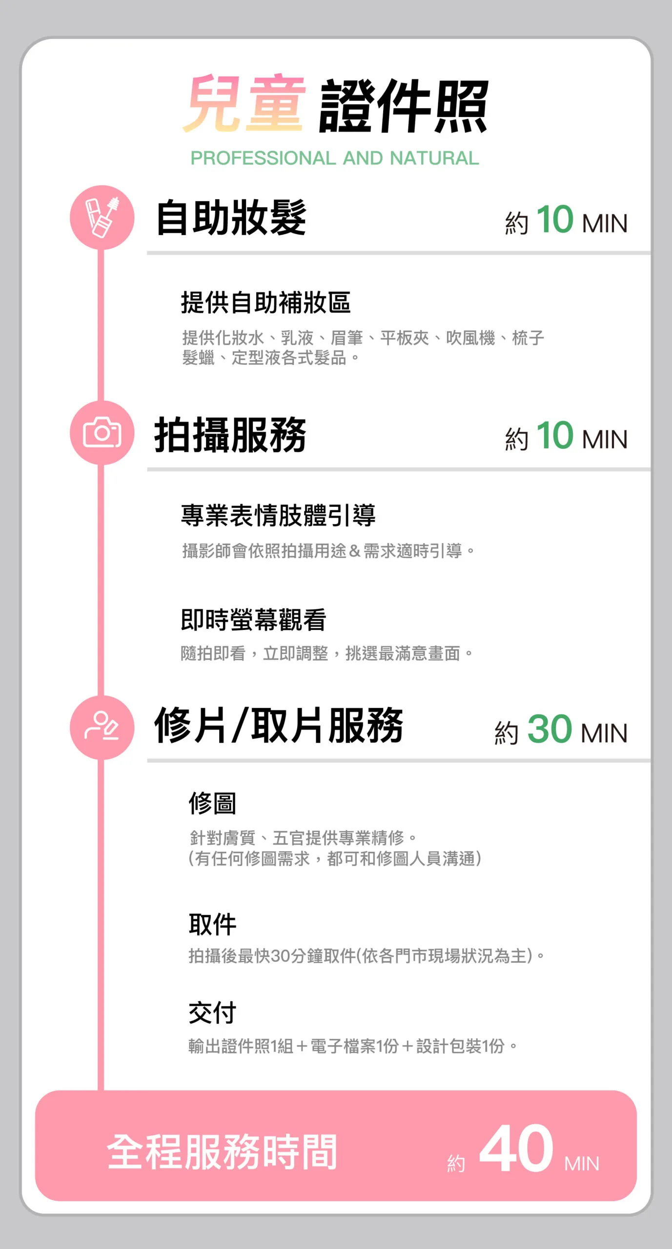 - 拍攝後修圖師會告知回來校稿的時間,證件照視店內當日情況最快30分鐘取件。
