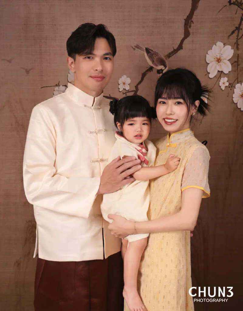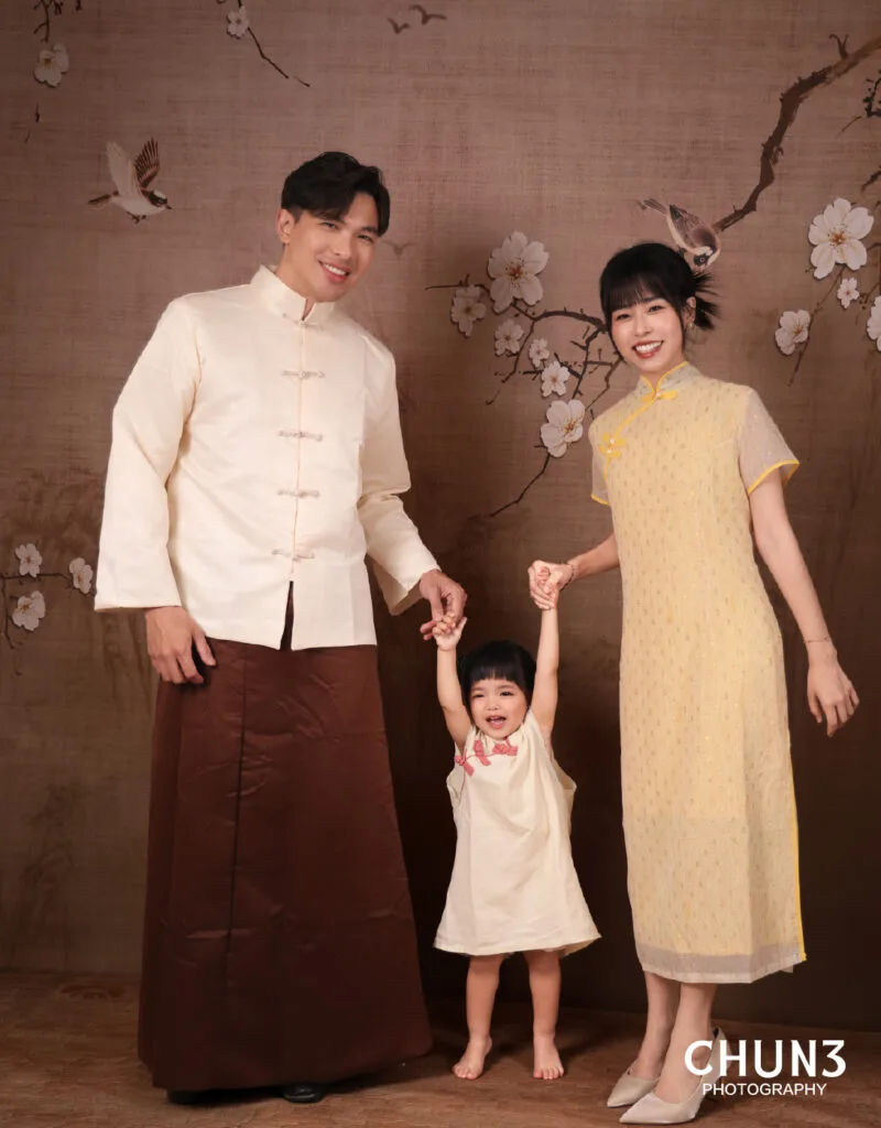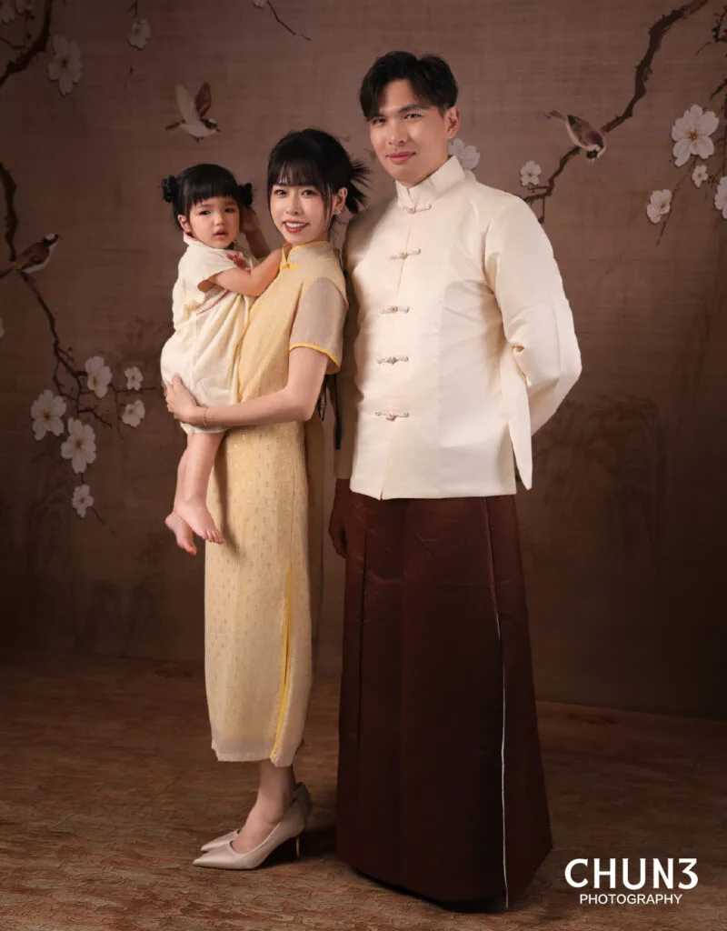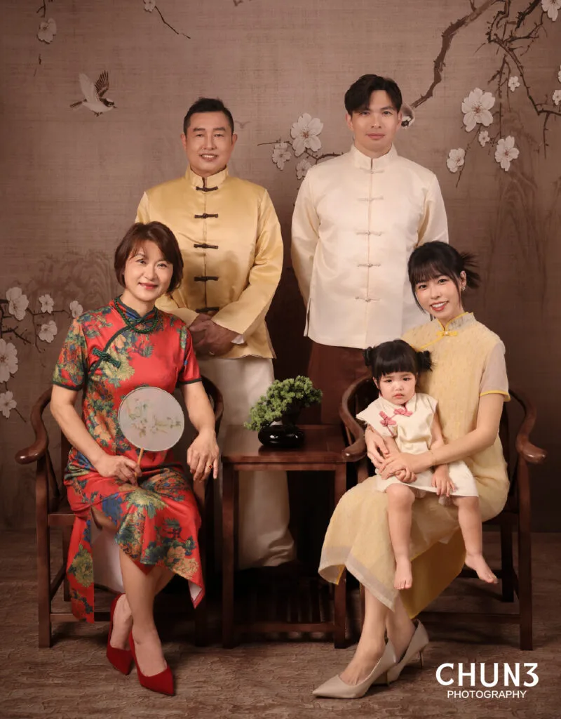 提供多款中式漢服、旗袍等服飾,無論三代同堂或小家庭,都能找到適合每位成員的造型。