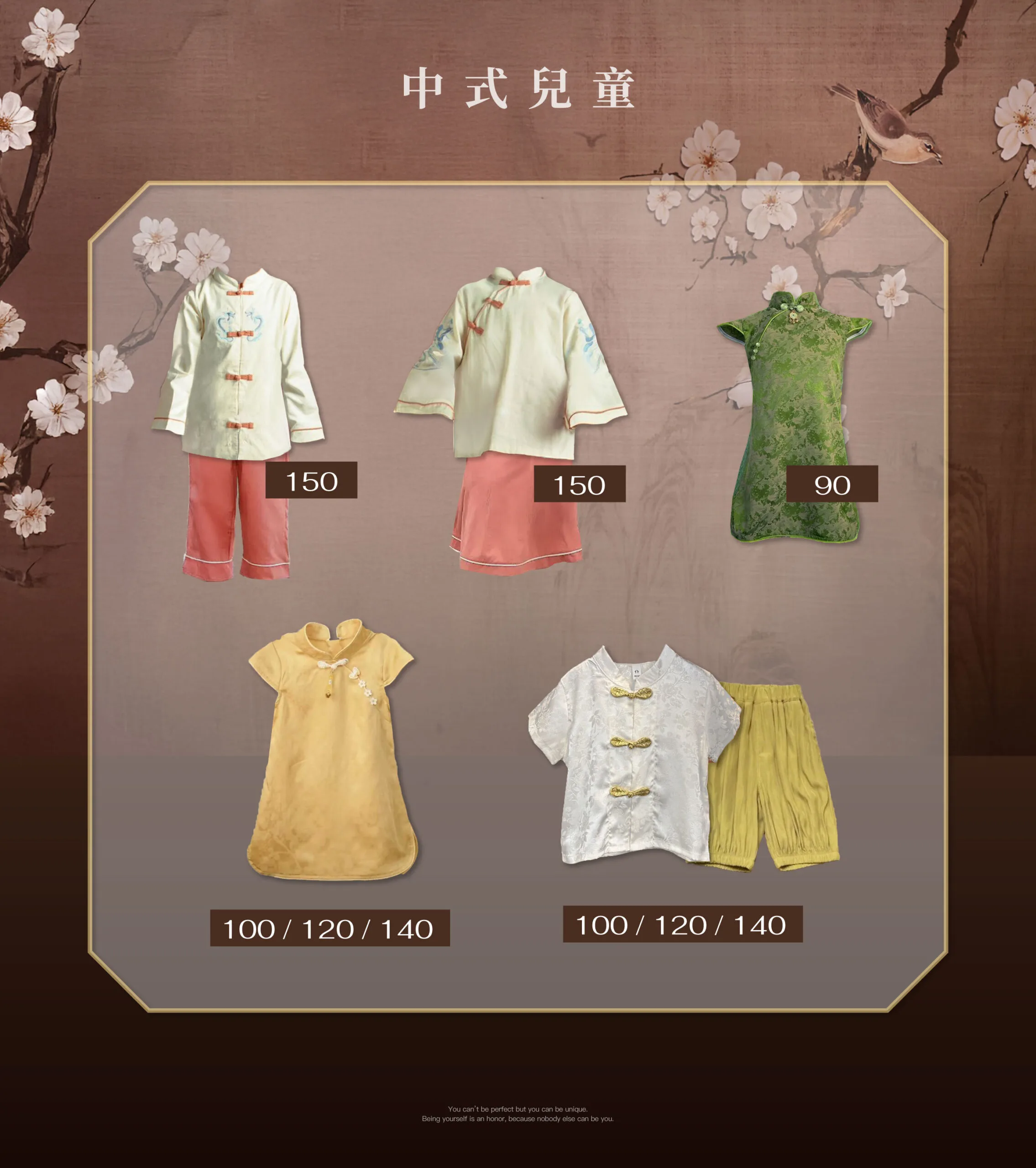 *本款式提供:成人女旗袍、成人男漢裝、女童旗袍、男童漢裝(款式尺寸請洽LINE客服)