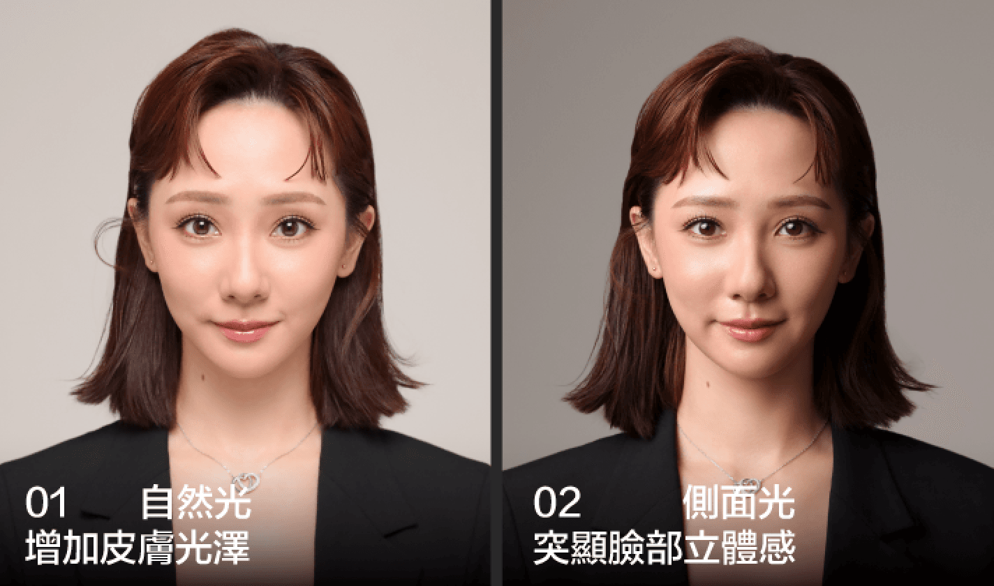 展現親和力與自然魅力時,自然光是最佳選擇。自然光拍攝讓肌膚煥發自然光澤,讓人一見便能感受到您的溫暖與真誠。