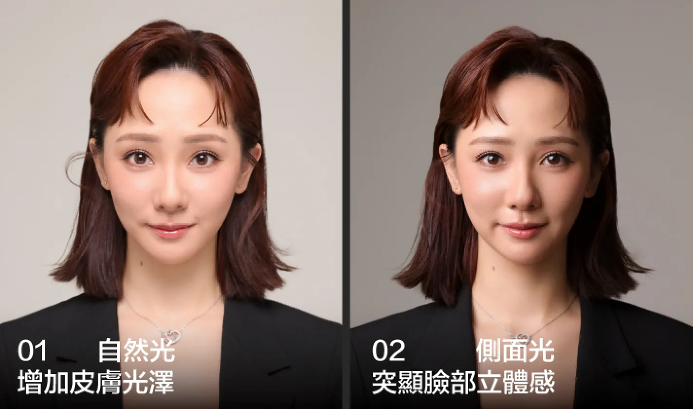 當需要展現專業與信賴時,側面光能夠完美捕捉真實與沉穩。均衡的光線效果,讓形象更加自然,無需多言,傳遞出值得信賴的信息。