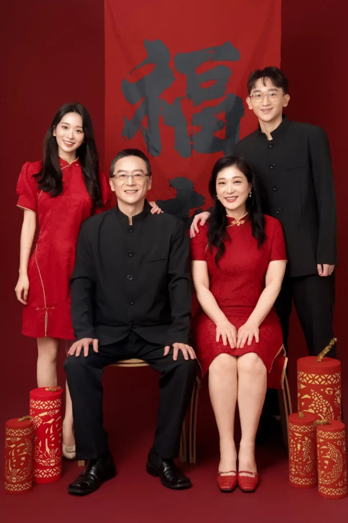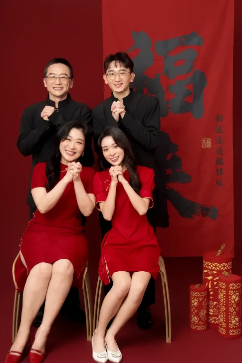 中式一襲紅衣,幾代同堂。在最傳統的色彩裡,定格最深刻的陪伴,唯有家的儀式感不變。以一張全家福,開啟最美的中式韻味。