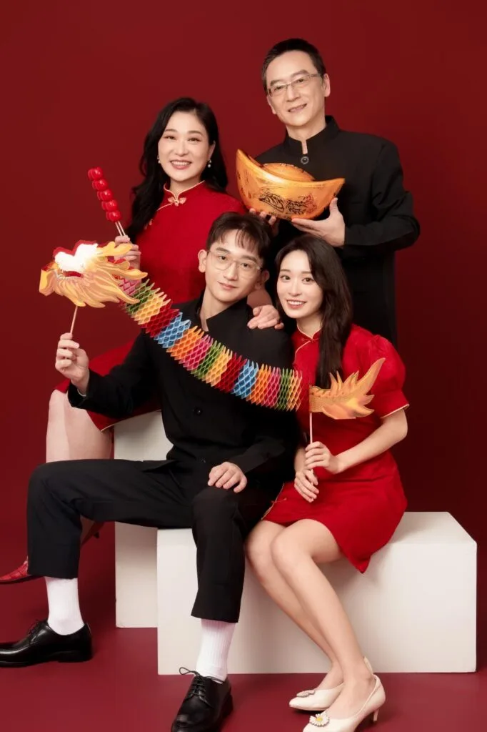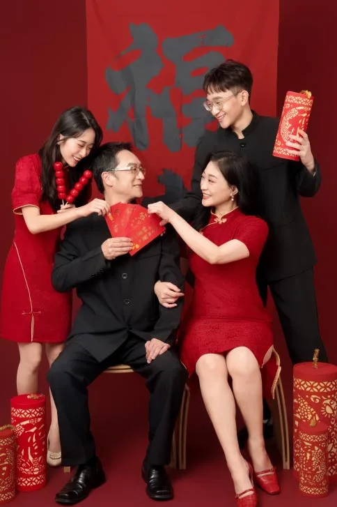 春山相館專屬打造春節場景,包含燈籠、紅包、新春飾品等豐富道具;精選新中式旗袍、中山裝,以及時尚的春節服飾免費穿搭,讓全家福充滿過年的歡樂氣息。