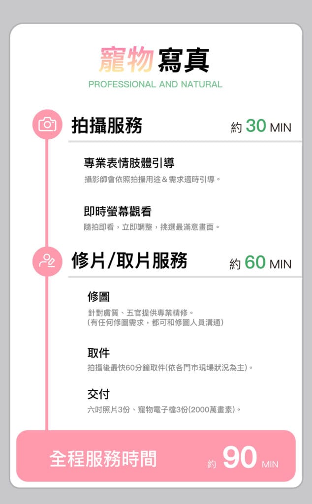 - 如欲拍攝人寵合照,請選購「寵物寫真/主人+寵物-2張方案」。