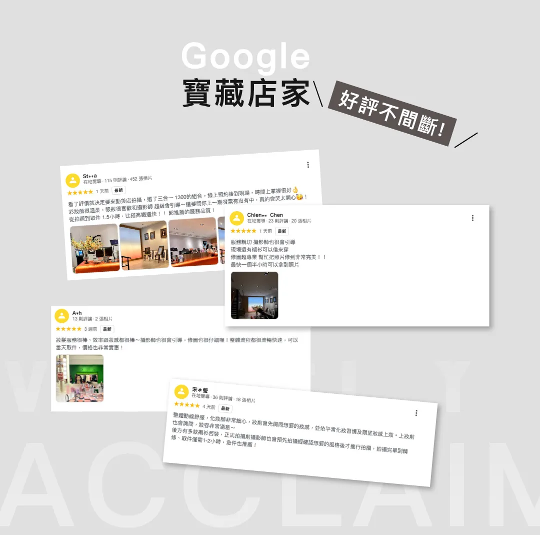 - 拍攝有隨拍即看的功能(拍完馬上可以看照片),如果有不滿意或是當下有疑問都歡迎隨時提出喲。